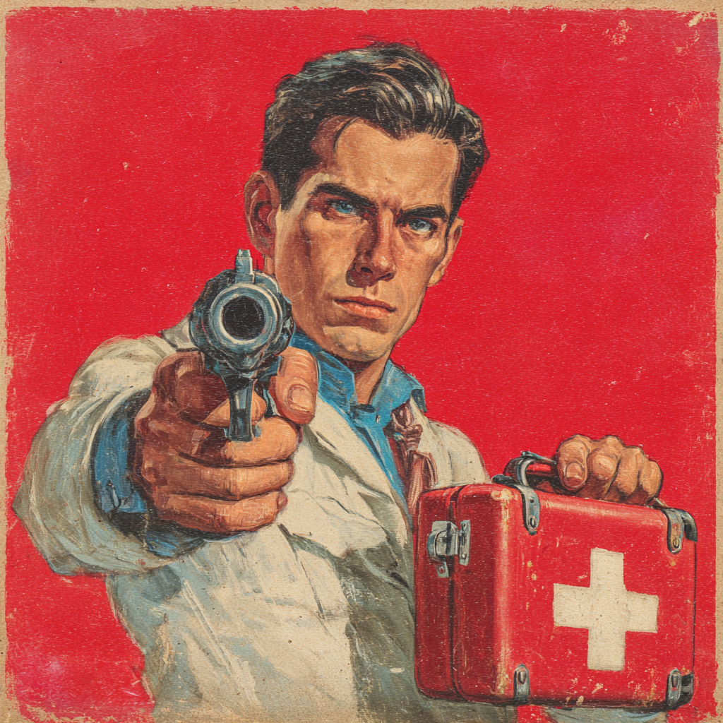 A manly man’s man with a gun and a medkit - Midjourney
